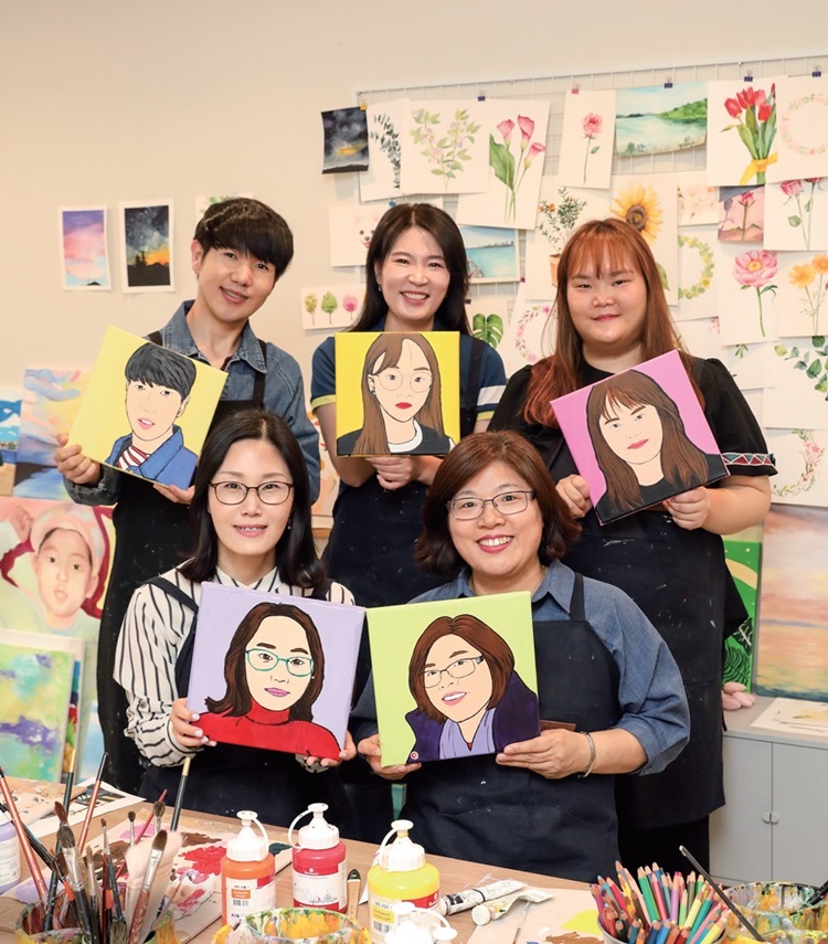 요즘은 언제 어디서나 휴대폰으로 편리하게 사진을 찍는다. 마음에 들지 않으면 곧바로 삭제하고 다시 찍는다. 하지만 캔버스에 그린 그림은 그렇지 않다. 그래서 더 특별하다. 무엇보다 나와 가족의 눈, 코, 입을 애정 어린 눈으로 오랫동안 바라보며 서툴지만 한 땀 한 땀 정성으로 완성한 것이 아닌가. 그림을 그리는 내내 콜센터부문 5명의 매니저들은 무슨 생각을 했을까? 한 가지 추측할 수 있는 건, 나와 가족을 더 사랑하게 되지 않았을까?