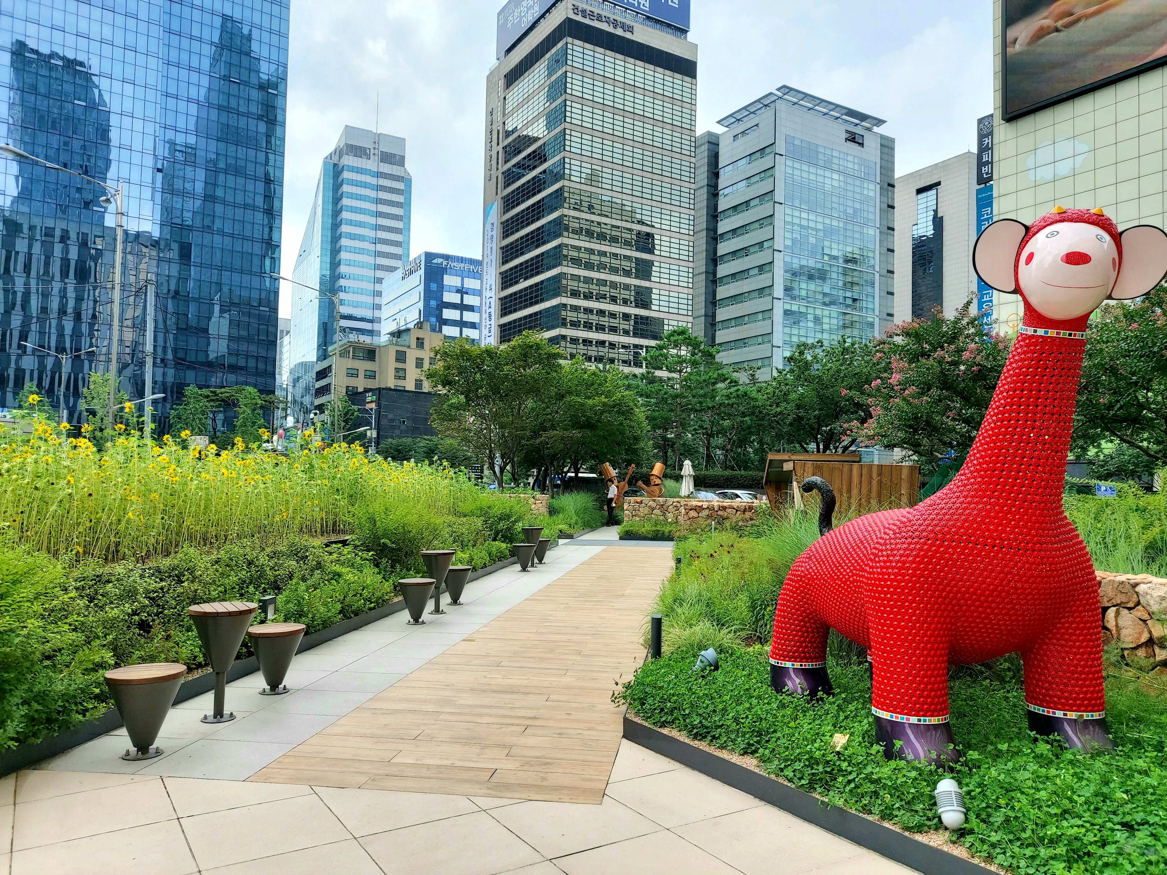 사옥 밖으로 나가면 예쁜 조형물과 벤치들이 조화롭게 어우러져있는데요.