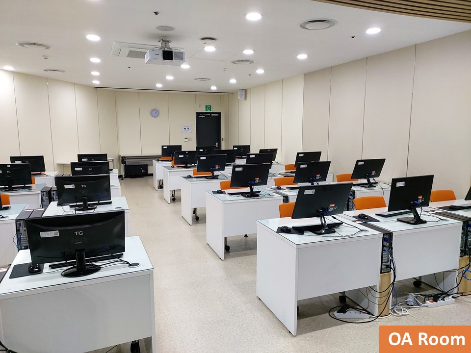 이렇게 교육을 위한 교육장과 화상교육이 가능한 OA Room이 있습니다.