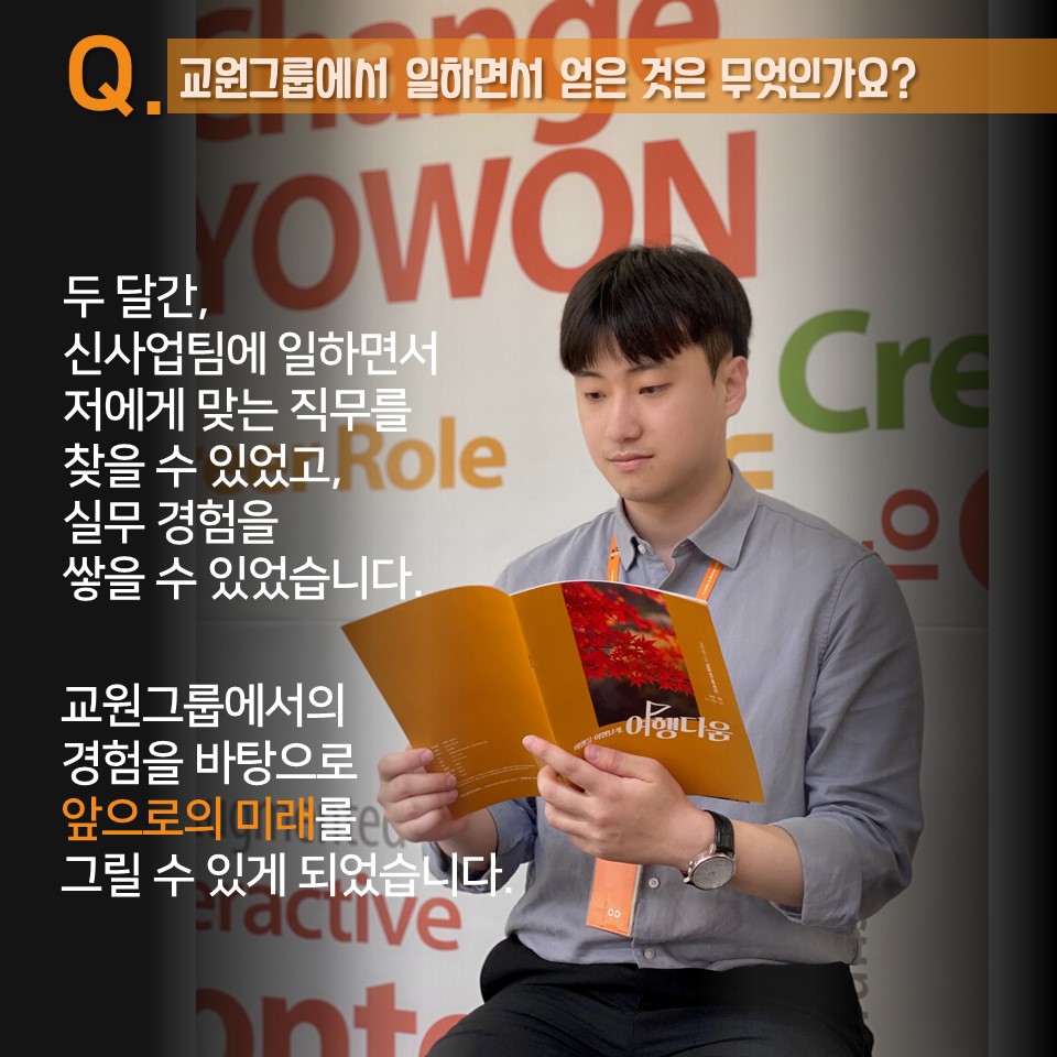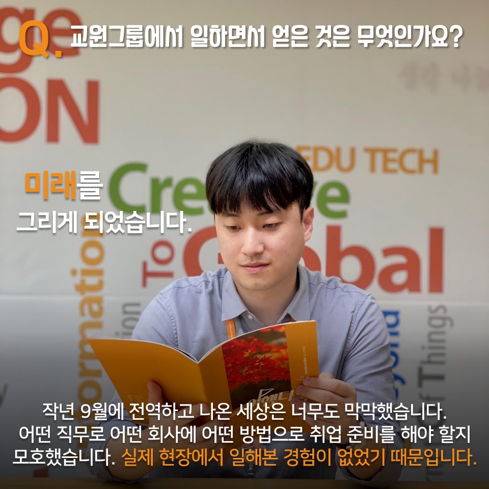 첫 타자는 현재 교원그룹 신사업추진 프로젝트팀에 근무하고 있는 김민준 매니저!