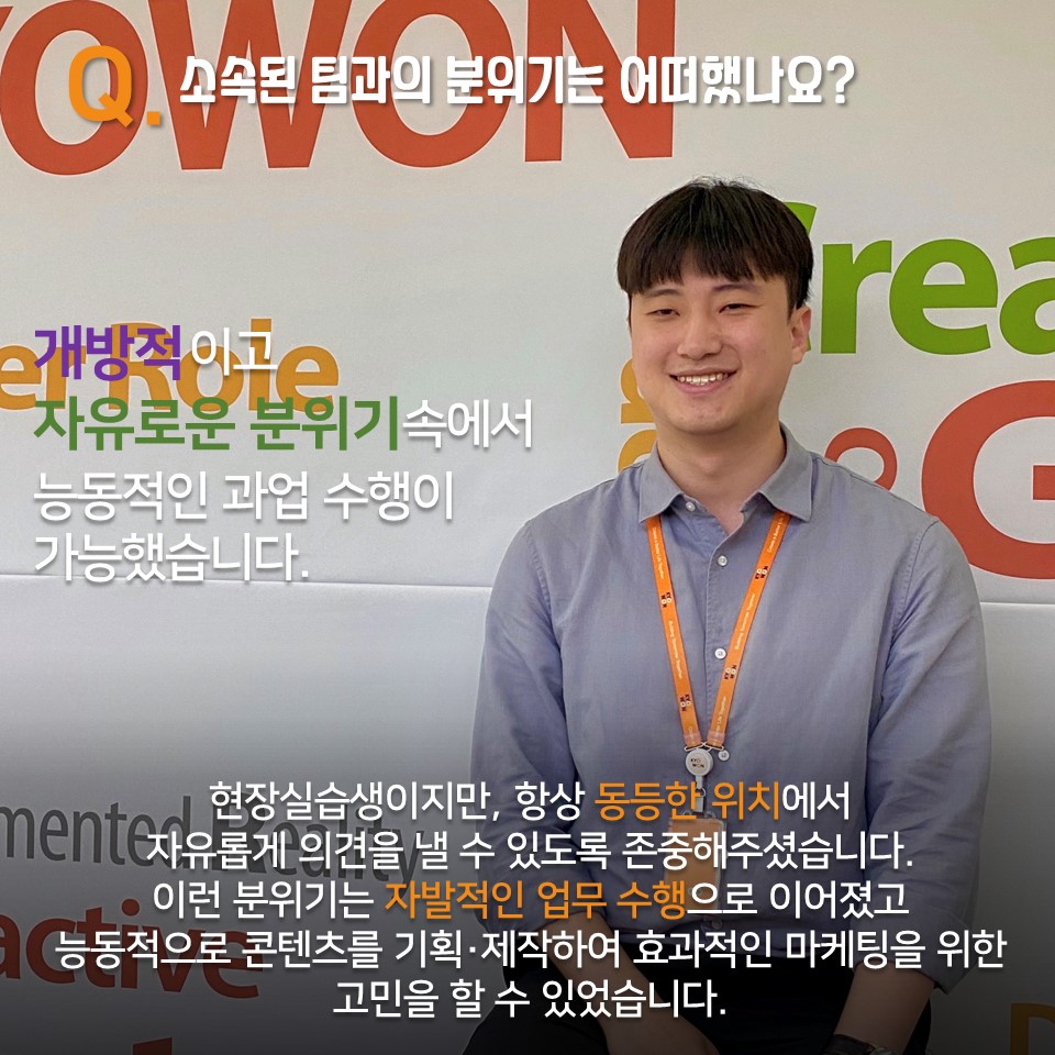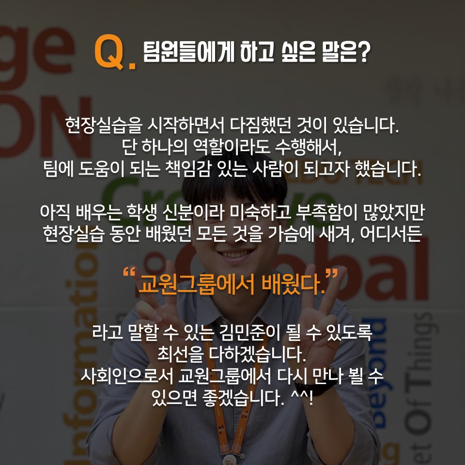 바로 현재 저희 교원에서 현장실습을 하고있는 대학생들의 후기인터뷰입니다.