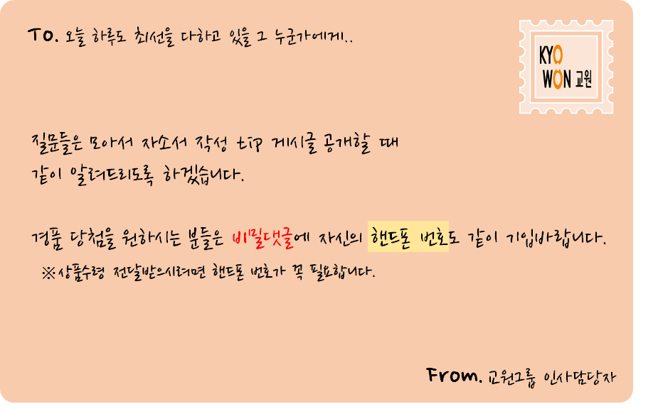 현재 교원그룹에서 근무하고 있는 채용담당자님이 직접 작성해주셨습니다.