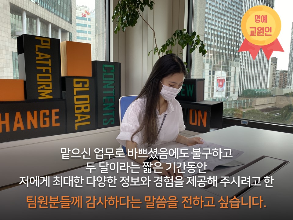 | [현장실습 후기 인터뷰] 신사업추진 프로젝트팀의 리얼 직무 후기! (2) | 2020.08.13 |