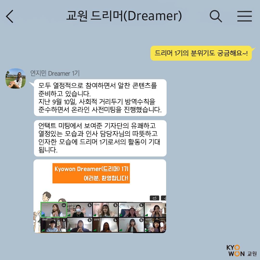 | 교원 드리머(Kyowon Dreamer) 1기 리모트 미팅 후기 (0) | 2020.09.13 |