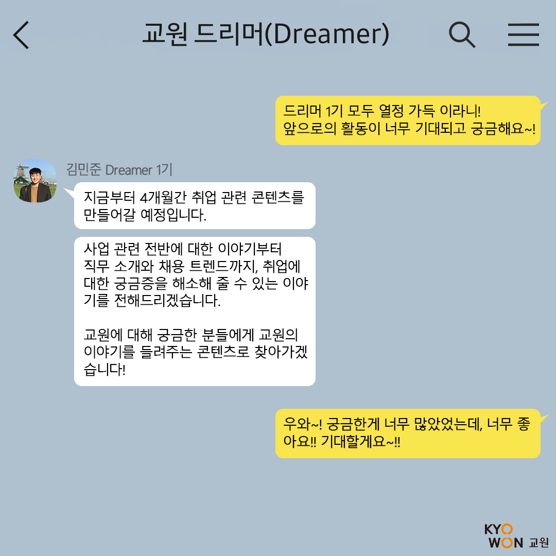 대학생들의 슬기로운 취준생활을 전해드리는 교원 드리머(Dreamer)입니다!