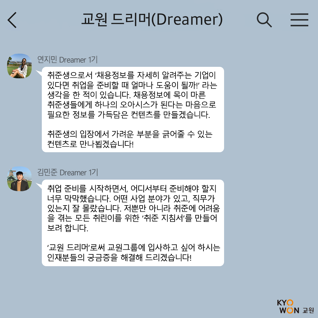 대학생들의 슬기로운 취준생활을 전해드리는 교원 드리머(Dreamer)입니다!
