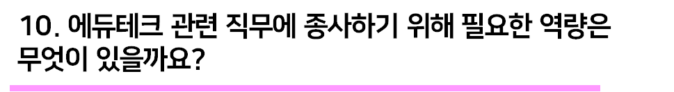 학습자에게 학습 내용을 효과적으로 전달할 수 있는 역량이 1순위라고 생각해요. 다음으로는 인공지능과 같은 ICT 기술들을 이해할 수 있는 역량인 것 같아요. 즉 교육과 기술을 잘 융합해서 학습자에게 더 효율적이고 더 잘 학습시킬 수 있는 역량이 필요한 거죠.