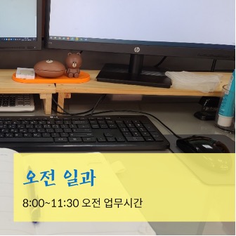 지금부터 오전, 점심, 오후로 나누어 저의 일상 사진과 함께 소개해 드리겠습니다!
