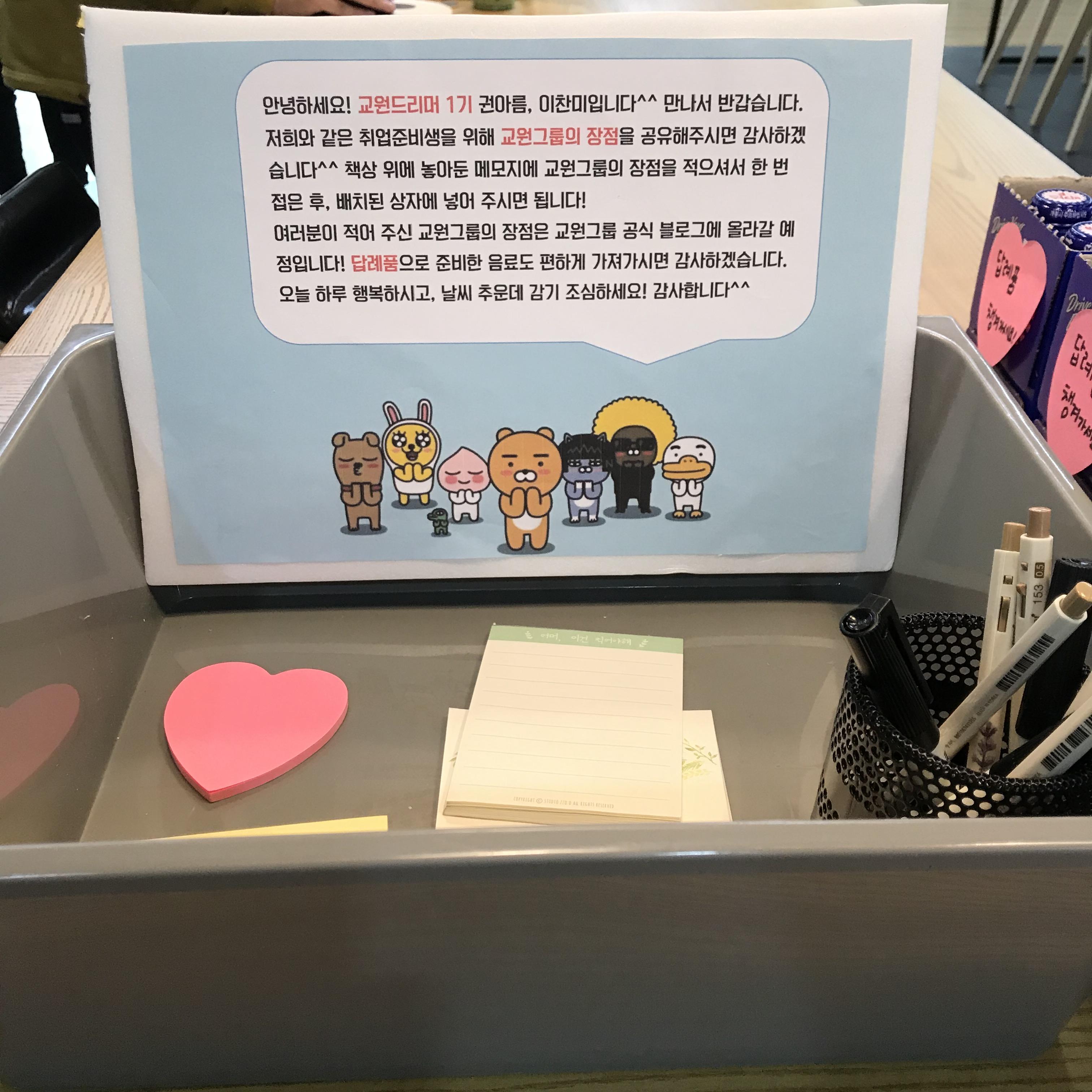 ↖교원그룹의 대표적인 휴게쉼터인 C-LAB에 교원그룹의 장점을 적을 수 있는