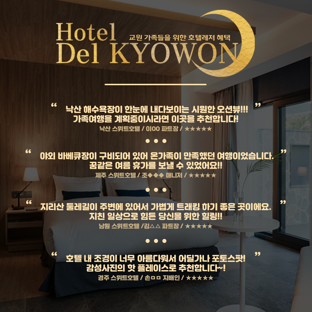 마지막으로 교원의 호텔 레저 복지를 사용해 보신 교원 가족의 후기입니다~!
