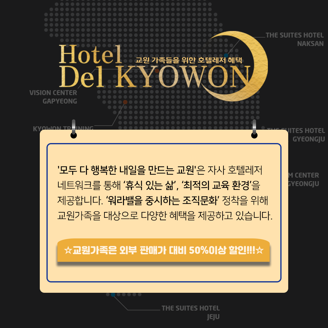 오늘은 교원가족들을 위한 교원의 복지 혜택 중 호텔에 관련된 복지들을 모아! 모아! 소개하려 합니다!!