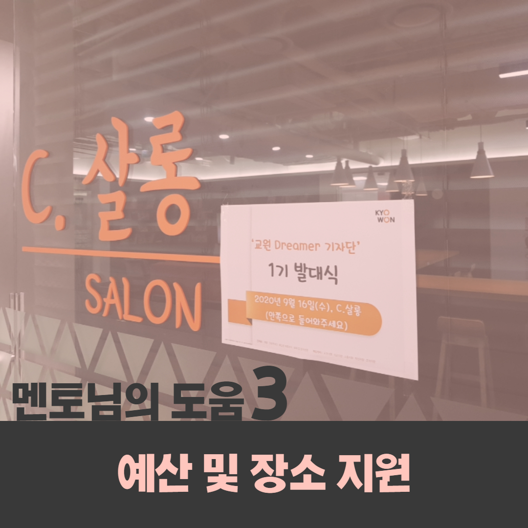 마지막으로 멘토님께서는 예산 및 장소를 지원해 주십니다. 인터뷰를 하려면, 인터뷰 장소나 답례품, 준비할 자료 등이 필요한데요. 멘토님의 도움이 있다면 걱정할 필요 없습니다!