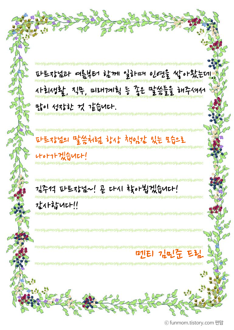 멘토, 김주석 파트장님께, 감사인사를 드리고자 합니다!!