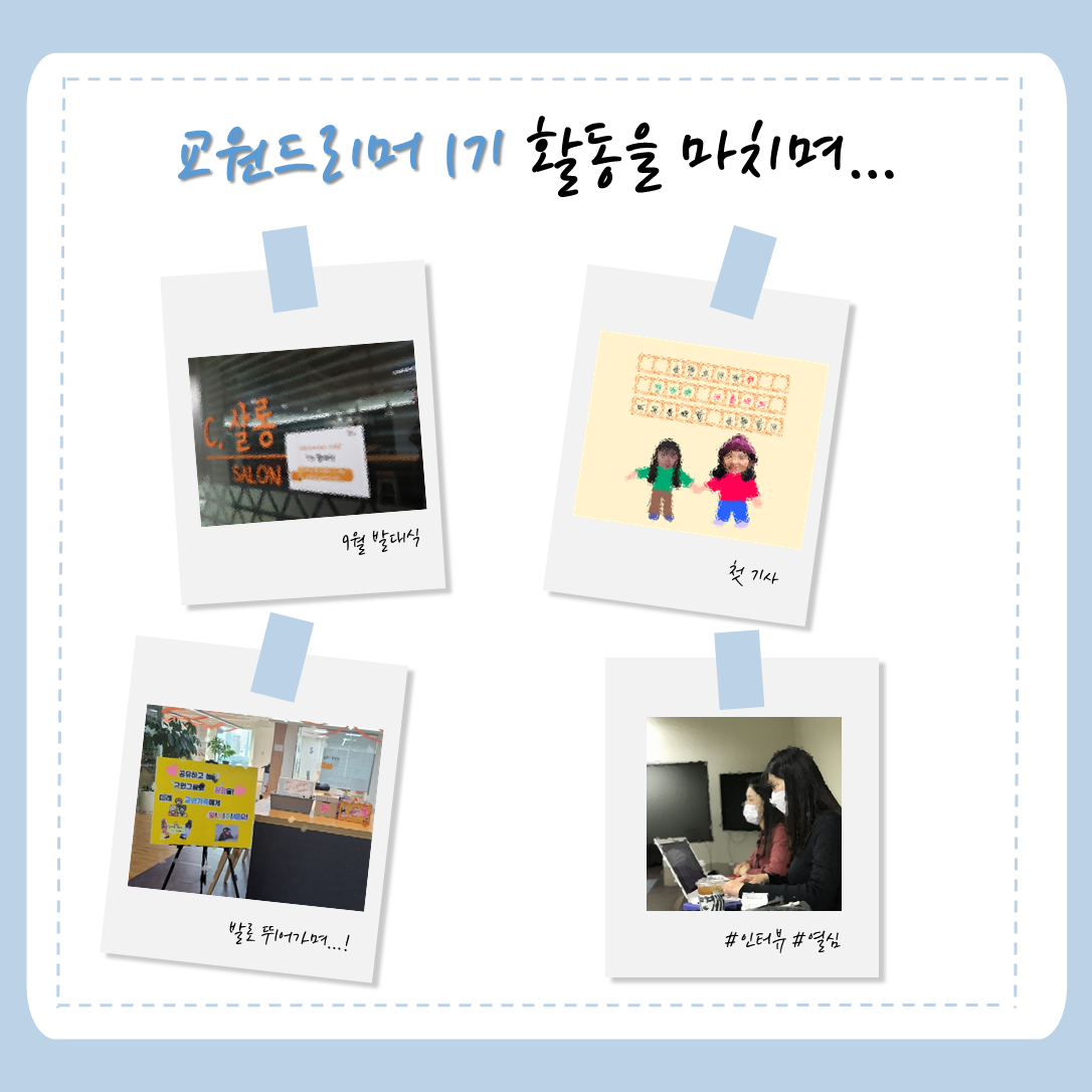 교원드리머 1기로 뽑혀서 좋아했던 것이 엊그제 같은데... 벌써 12월 활동을 마지막으로 교원드리머를 마무리할 때가 다가왔네요ㅠㅠ