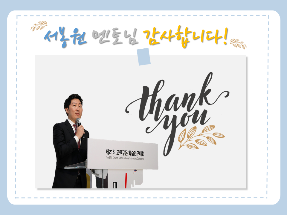 9월에 첫 발대식을 할 때 만나서 지금까지, 교원드리머 활동을 하면서 가장 큰 도움을 주셨던 저의 멘토님! 서봉원 멘토님께 감사의 마음을 담아 편지를 쓰는 것으로 12월 활동 마무리를 해보고자 합니다.