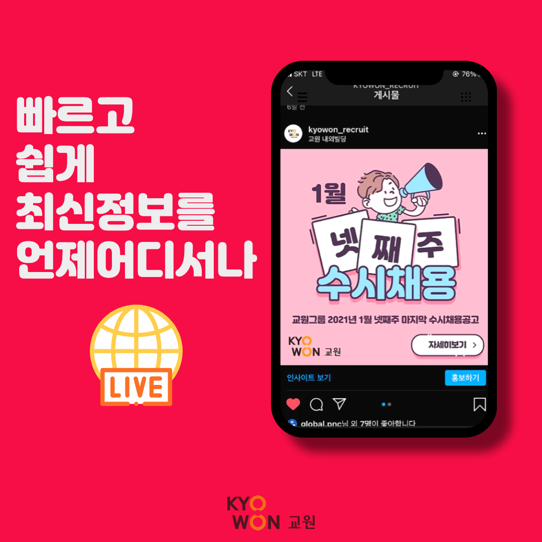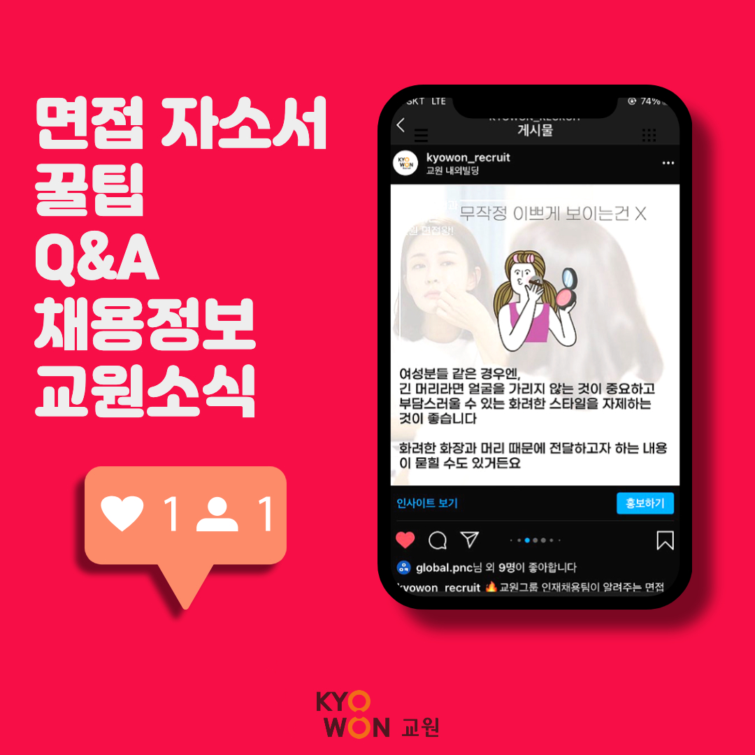 인스타그램: kyowon_recruit 검색 GO GO~!