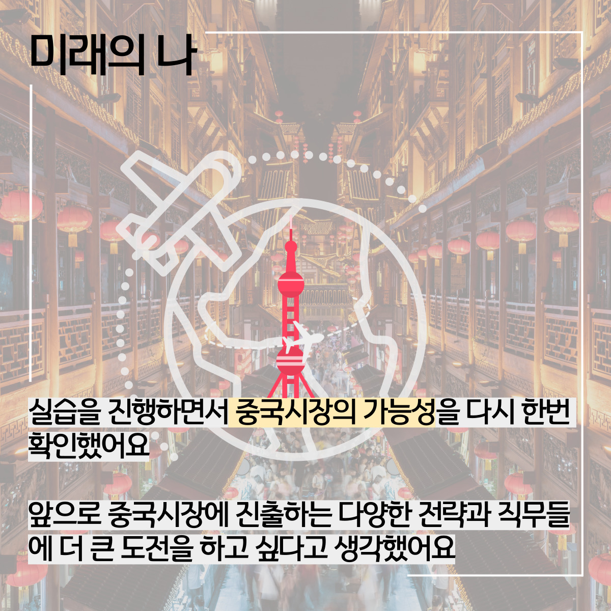 저는 담당 교수님의 도움을 통해 해당 팀에 합류하게 되었는데요, 교원그룹에서도 제가 중국어를 전공하고 경영학을 따로 배운다는 점을 고려하여 중국시장의 콘텐츠 전략을 기획하는 기획팀에 배정되도록 도와주셨습니다. 많은분들이 신경을 써주셔서 해당 팀과의 소중한 인연이 생겼네요! (웃음) 해외시장 전략 콘텐츠의 기획과 마케팅 업무를 주로 맡으면서 저의 주 전공을 살리고 경영학 지식을 더하여 다양한 부분을 배울 수 있을 거라 생각하였습니다.
