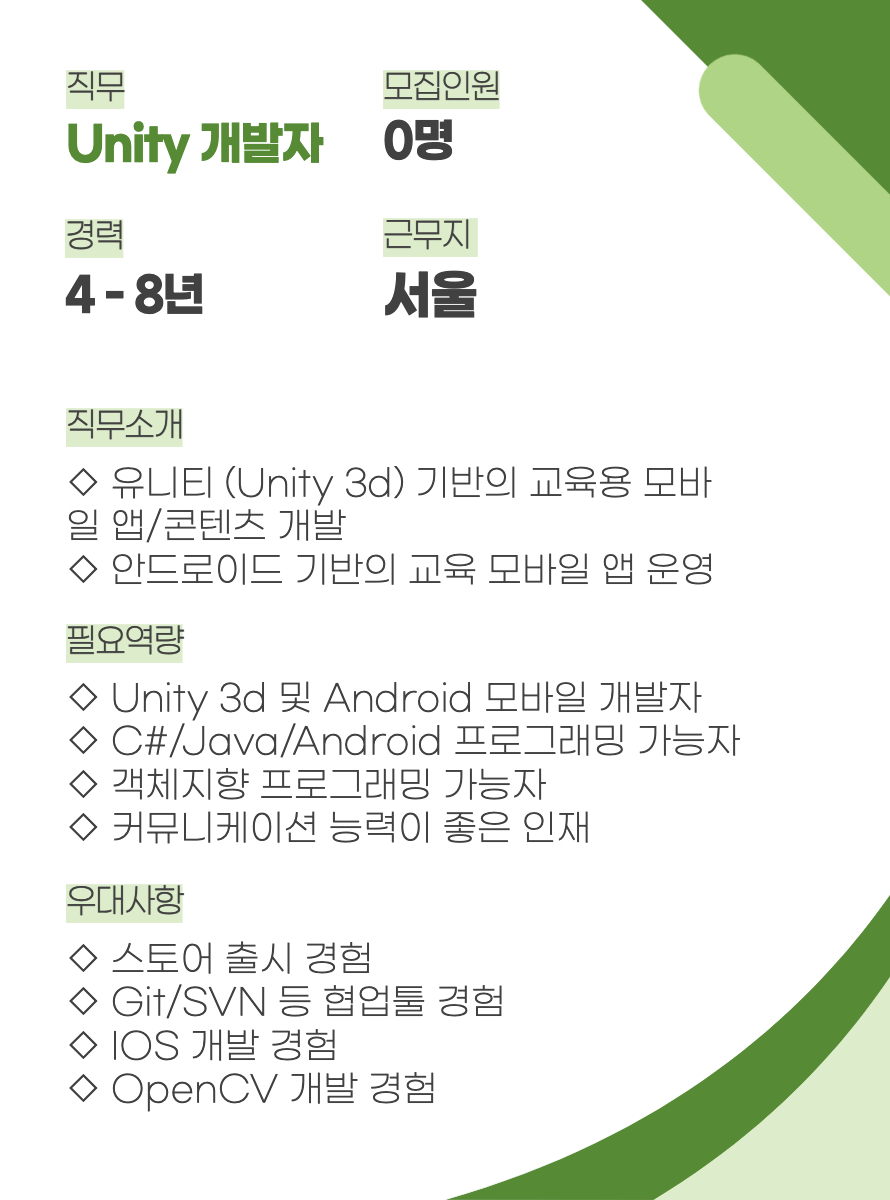 | [모집안내] 유아사업팀 경력직 수시채용 (영어 콘텐츠 개발) (0) | 2021.03.11 |