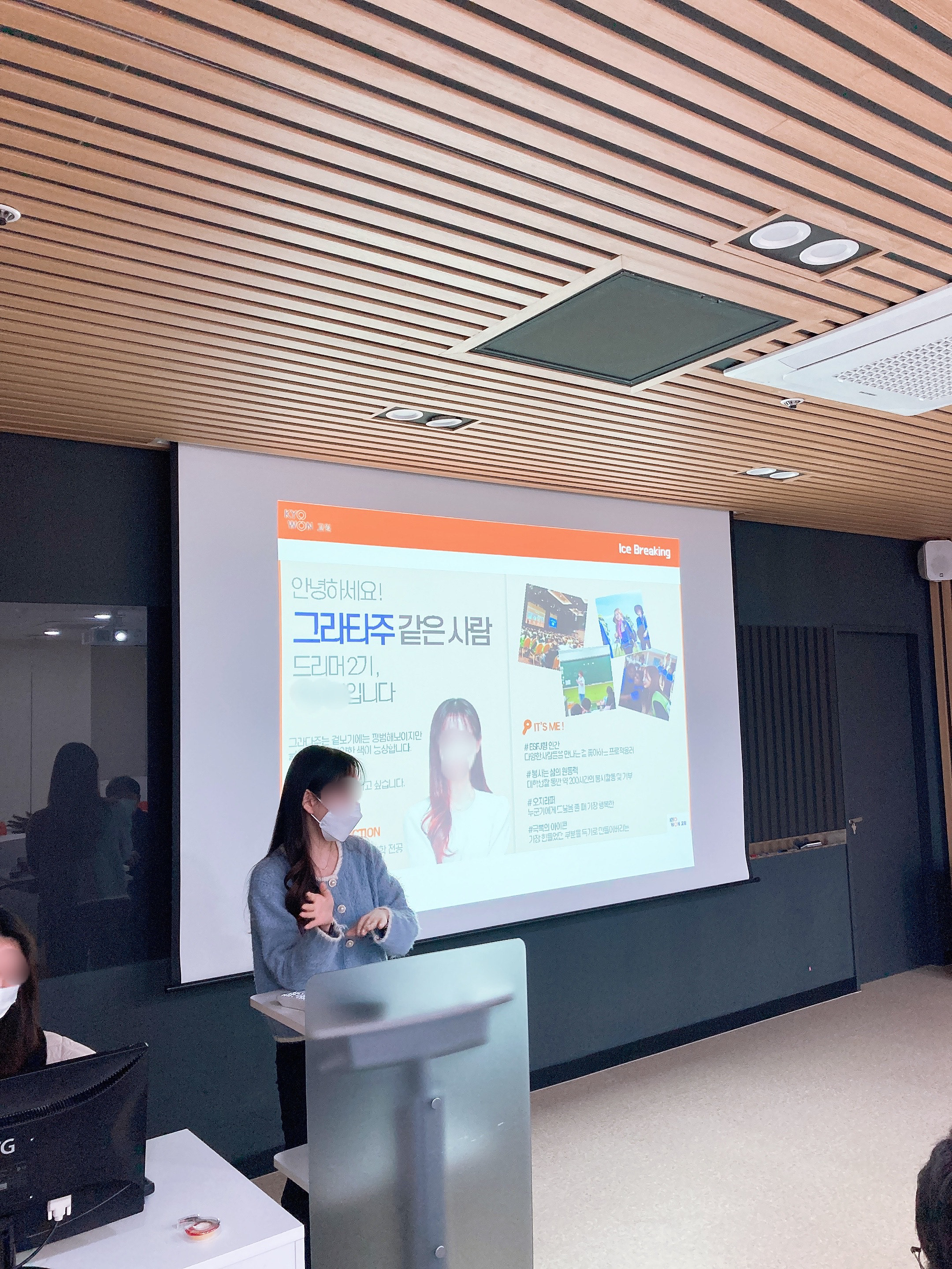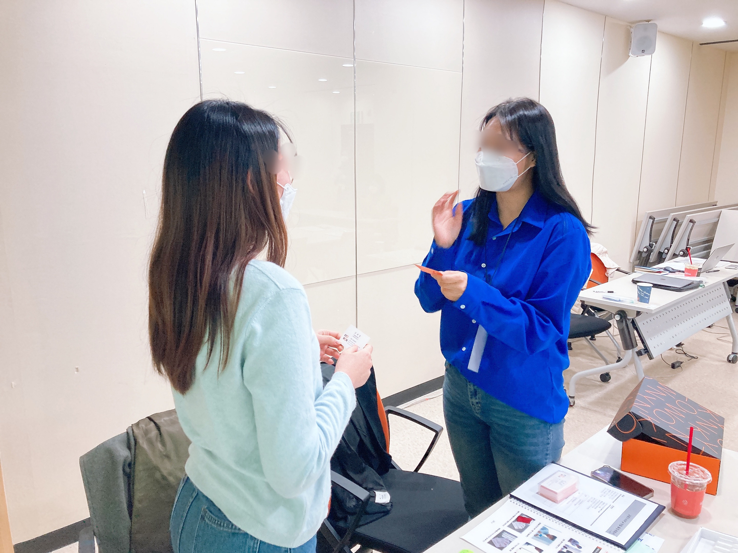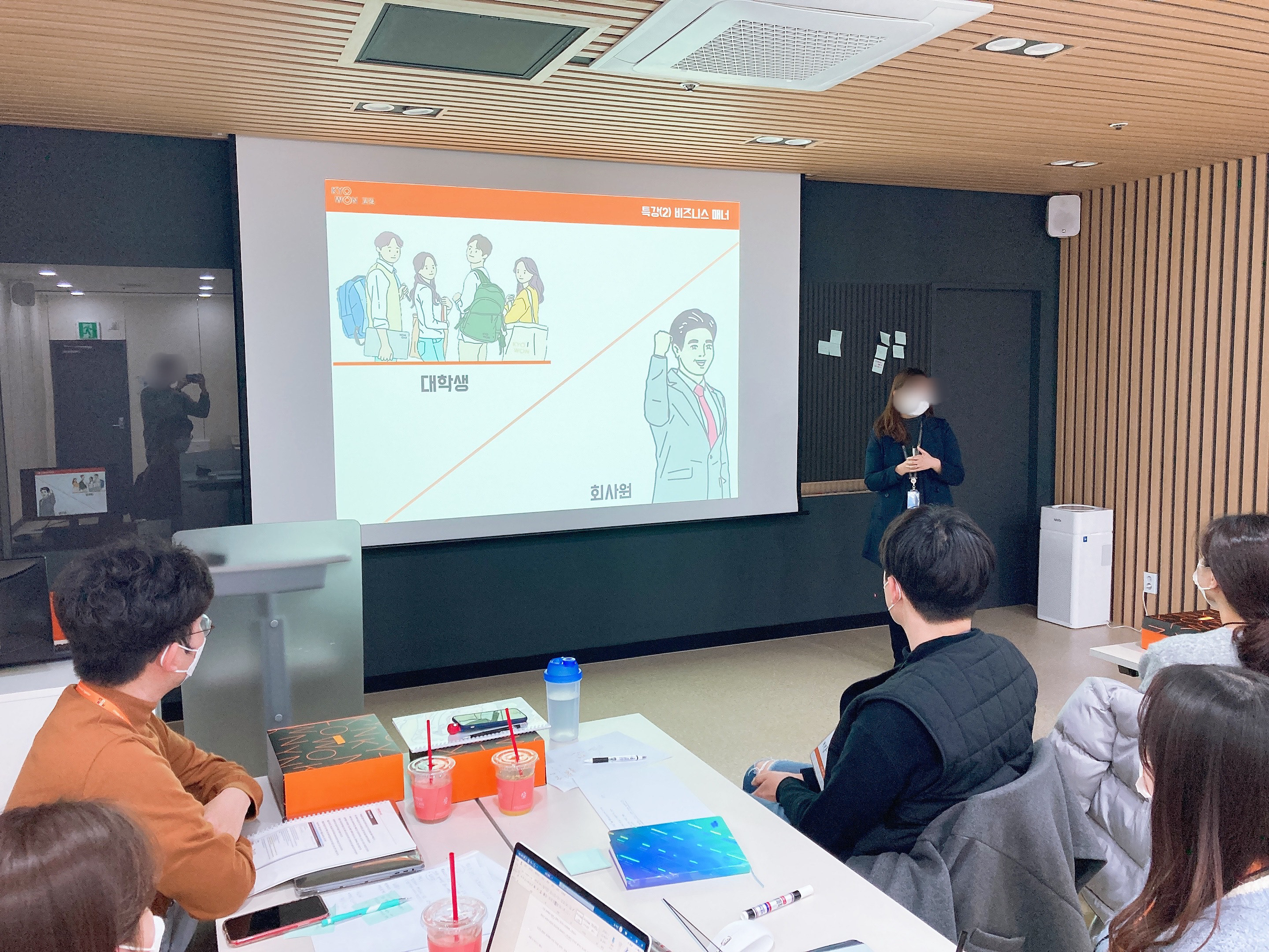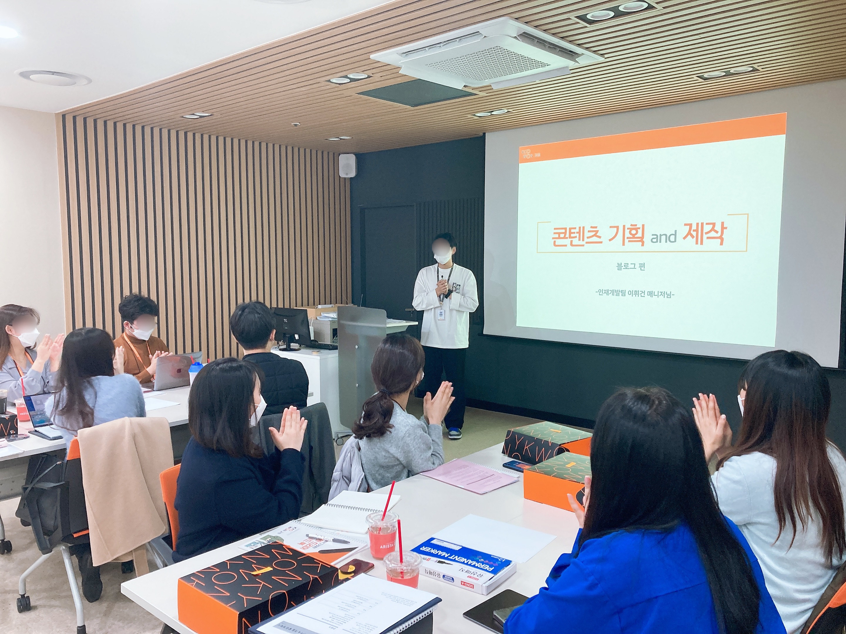 오전의 일정을 마친 뒤 간단한 점심식사를 즐기고 오후에는 인재개발팀 이휘건 매니저님의 "콘텐츠 기획과 제작"에 대한 꿀팁을 전수받는 시간을 가졌습니다. 점심식사시간과 휴식시간만으로는 서로 어색했던 기자단 친구들은 이휘건 매니저님의 입담과 간단한 기획, 아이디어를 공유하는 시간을 통해 정말 빠르게 친해진 것 같아요.