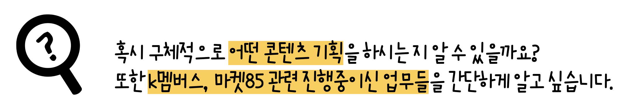 영상을 보시기 전, 장인정 매니저님과 진행한 간단한 사전질문& 답변들이 아래에 있습니다.