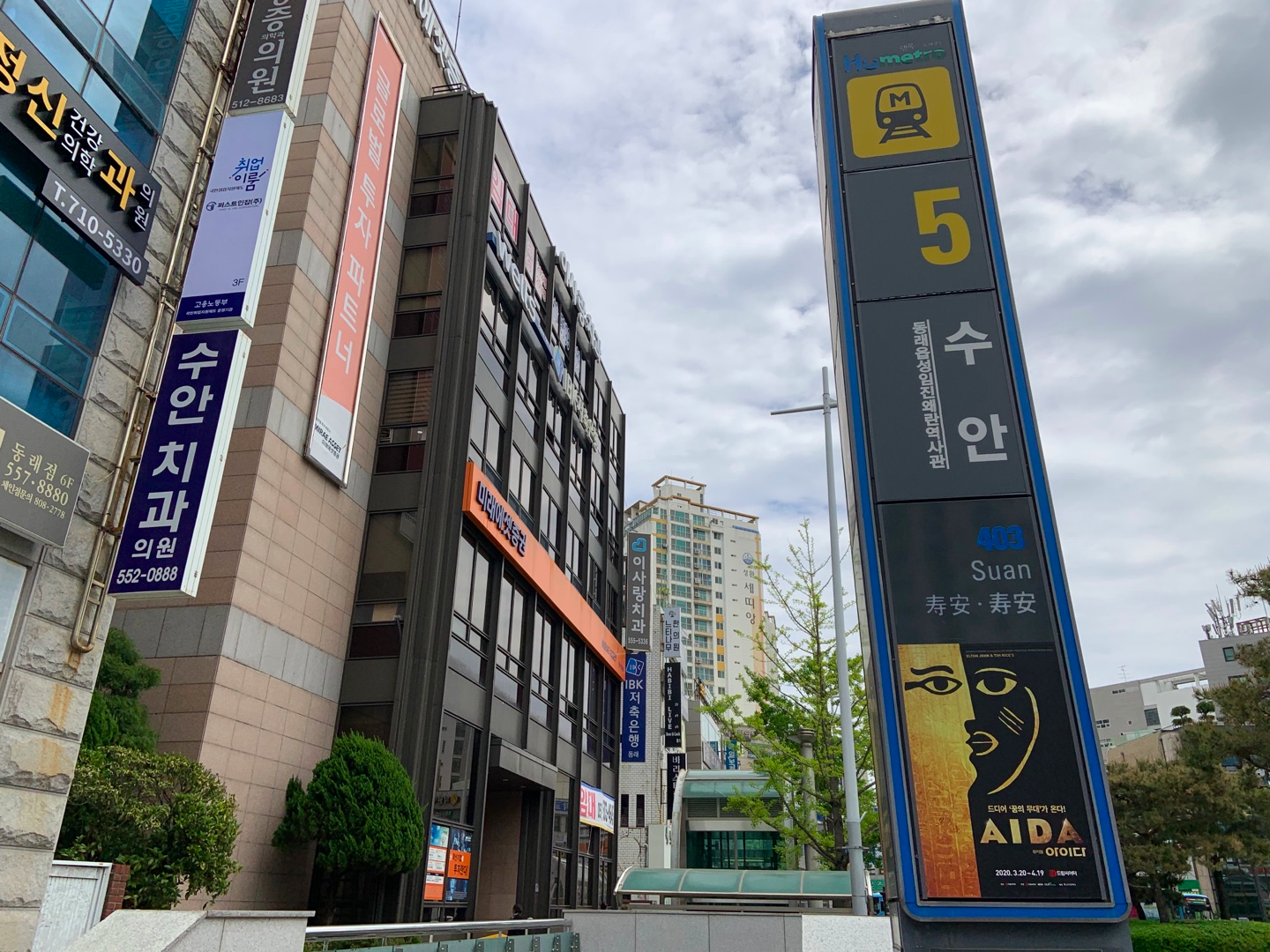 부산 지하철 수안역 5번 출구에서 나오니, 웰스 부산 지역단이 곧바로 눈에 보였습니다. 도보로 2분 거리에