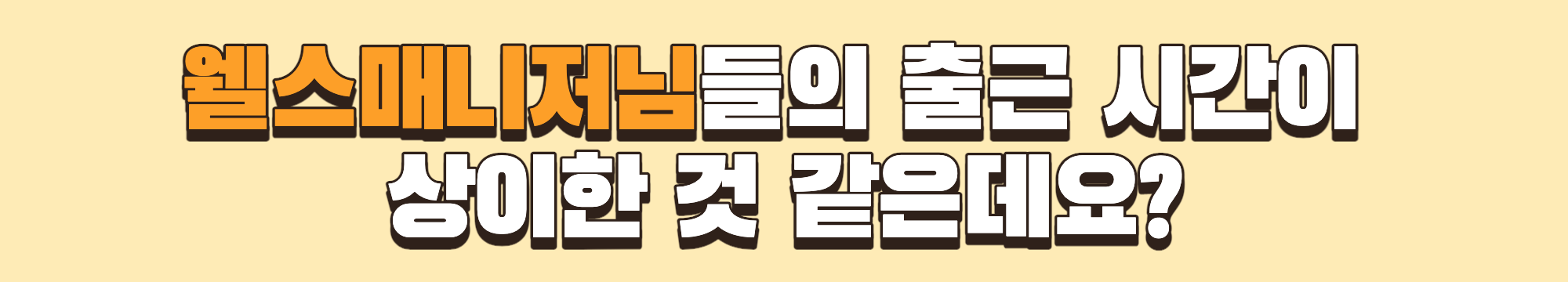 웰스 매니저님들은 출근이라는 표현을 쓰지 않고 미팅 참석이라는 표현을 쓰고 있습니다. 또한 각자 요일을