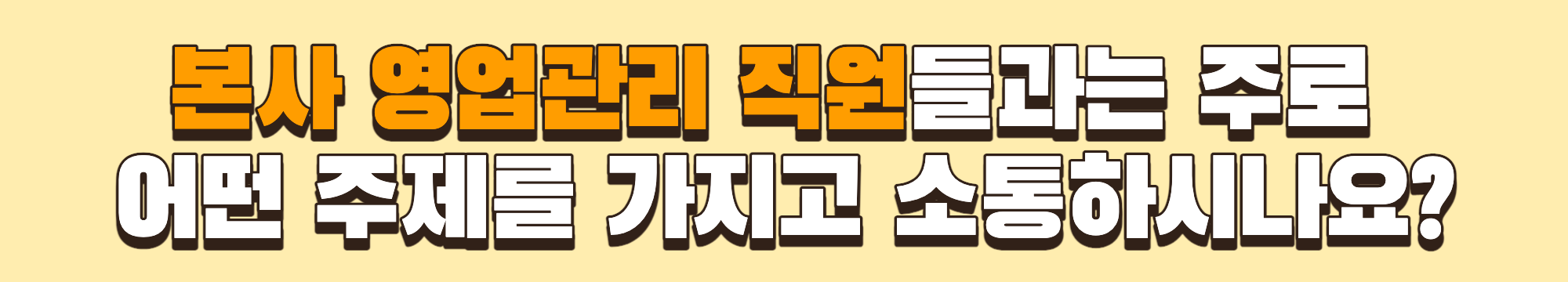 본사에서 업무 협조를 위해 연락이 오는 경우도 있습니다. 신상품이 나올 때 현장 반응, 제도(수당, 미팅 참석 규정 등)가 바뀔 때 현장에 접목시키기 전 필드 테스트 등을 요청합니다.