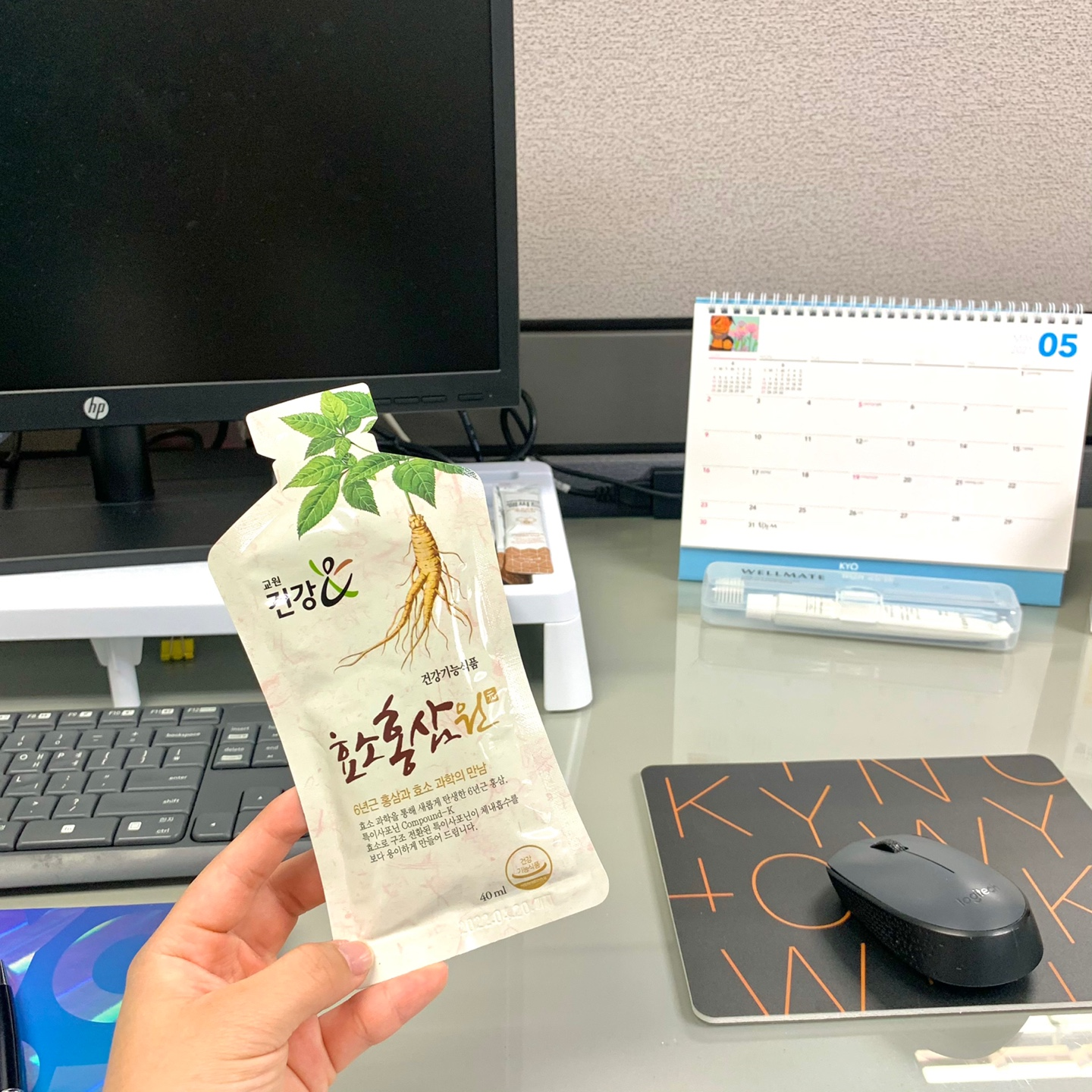 양치 후에는 [더오름 데일리 멀티비타민]과 [효소홍삼원]을 챙겨 먹으며 오후 업무를 위한 활력을 찾습니다.