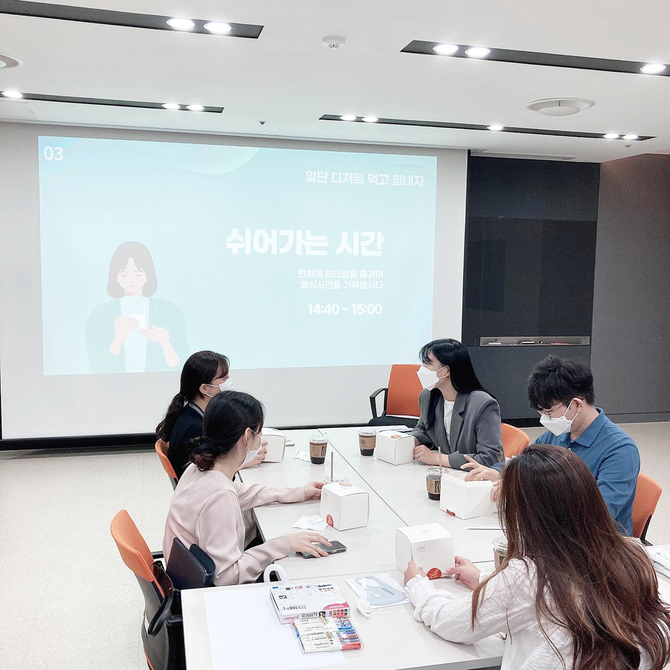 2시간의 간담회 동안 어찌 기자단 활동얘기만 하겠습니까~! 오랜만에 직접 만나 반가운 드리머 동기들과 수다 타임을 가져야죠. 간단한 디저트와 음료는 인재채용팀에서 준비하였으나 코로나 19 방역지침에 따라 당장 식음이 불가능해 일단 집에 가져가는 수밖에 없겠죠? ㅠㅠ 디저트보단 동기들과 수다가 더 달콤한 드리머였습니다.