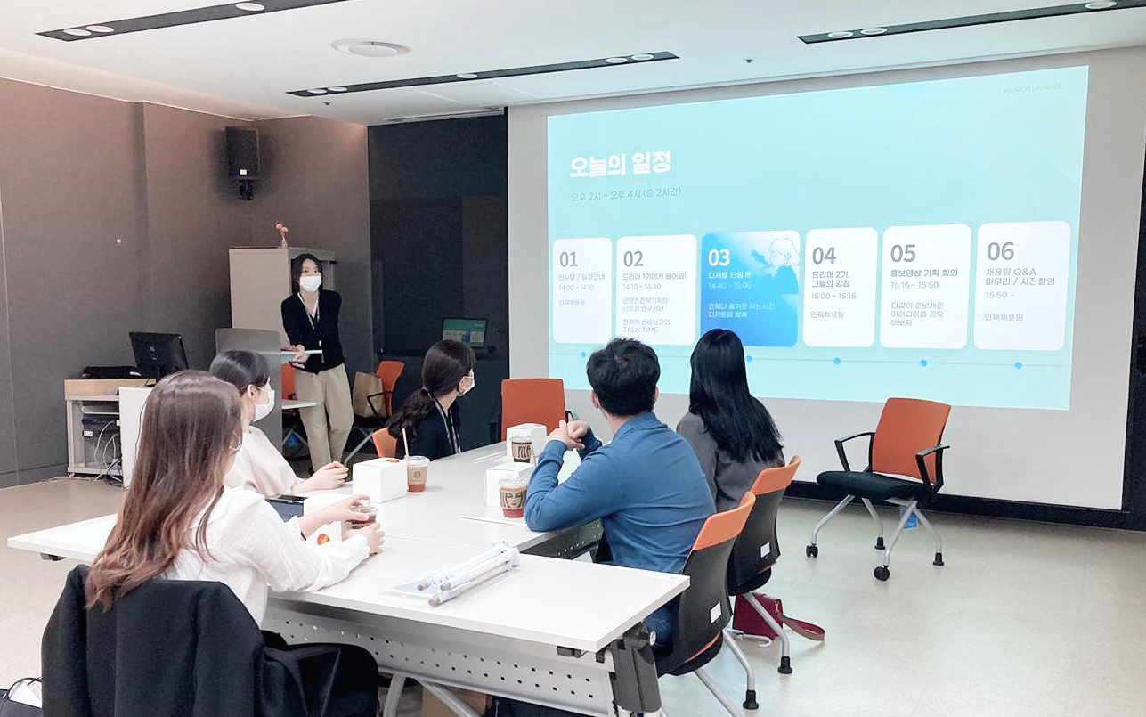우선 드리머 기자단 발대식을 진행하였던 [ C. Learning Center ] 에서 다시 반가운 얼굴들이 모였습니다! 비어있던 간담회 장소에 하나 둘 드리머들이 모이네요. 손 소독을 마치고 방문록을 작성한 드리머들, 마스크를 착용한 채로 만나서도 어색함 없이 얘기를 나눕니다. ><