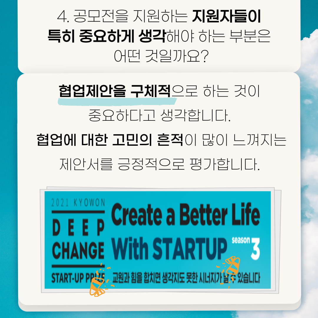 Q4) 해당 공모전을 지원하고자 하는 지원자들이 특히 중요하게 생각해야 하는 부분이 있을까요?