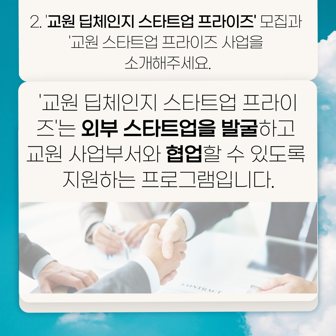Q2) ‘2021 교원 딥체인지 스타트업 프라이즈’ 3기 모집‘과 교원 스타트업 프라이즈 사업을 소개해주신다면?