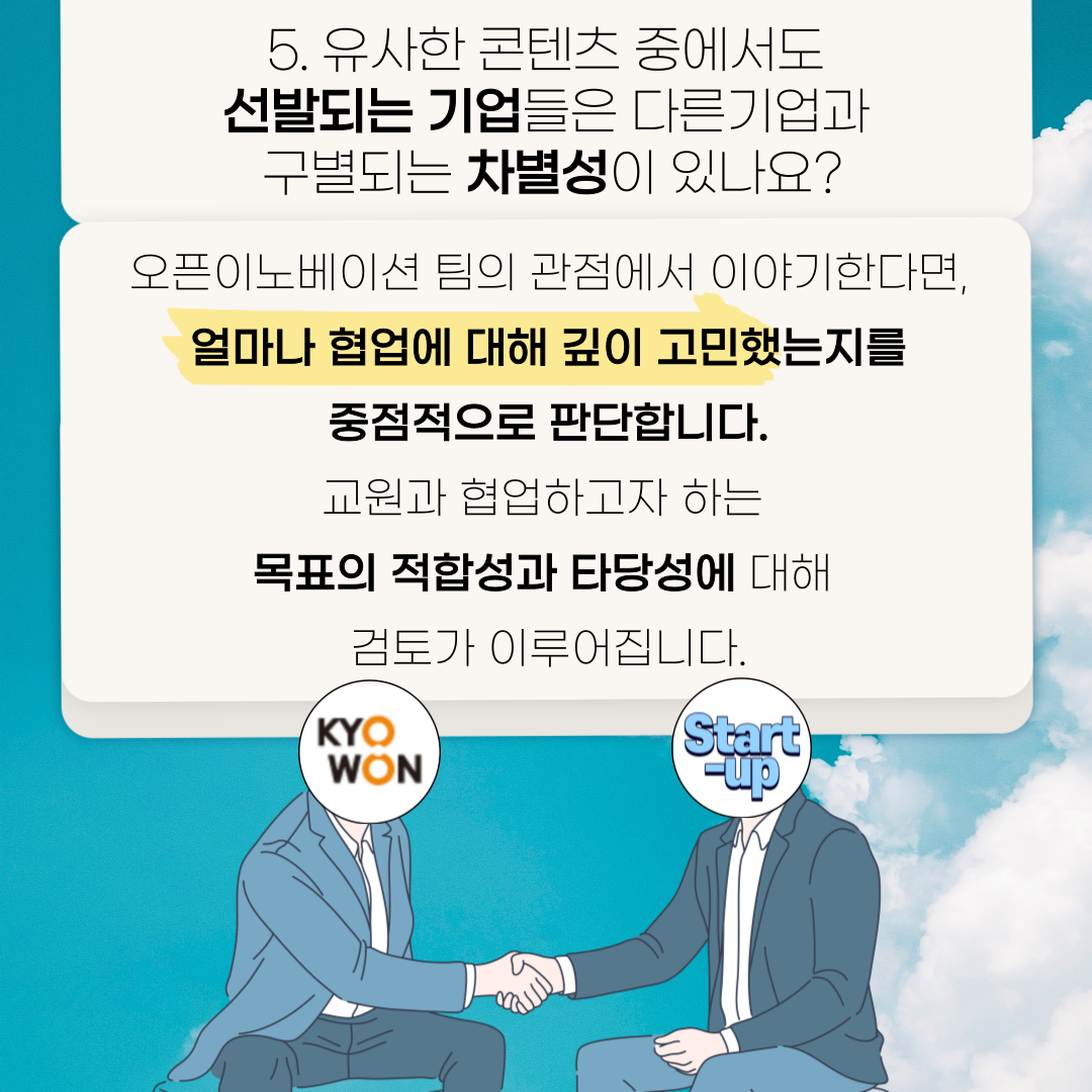 외부 스타트업이 교원과의 협업에 대해 제안하는 것이 쉽지 않다는 것을 알고 있습니다. 그럼에도 불구하고 제안서에 협업에 대한 고민이 많이 묻어난다면,