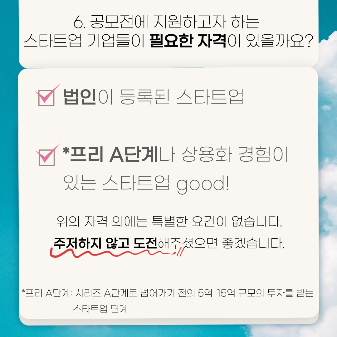 Q6) 해당 공모전에 지원하고자 하는 스타트업 기업들이 필요한 자격이 있을까요?
