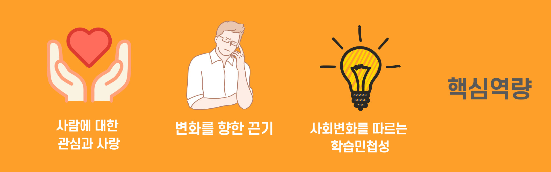 중요 역량으로 세가지를 뽑을 수 있는데 첫째로는 사람에 대한 관심과 사랑입니다 (웃음)