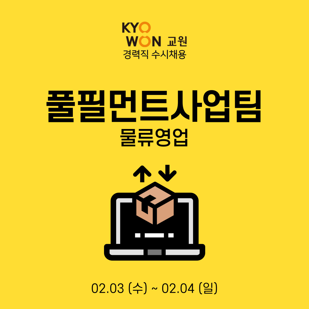 [모집안내] 풀필먼트사업팀 경력직 수시채용 (물류영업) 교원그룹의 쉽고 빠른 채용 소식을 접하시고 싶다면? 교원그룹 인재채용 인스타그램을 팔로우하고 소식을 받아보자! 인스타그램 @kyowon_recruit Find your job/수시채용 2021.02.04