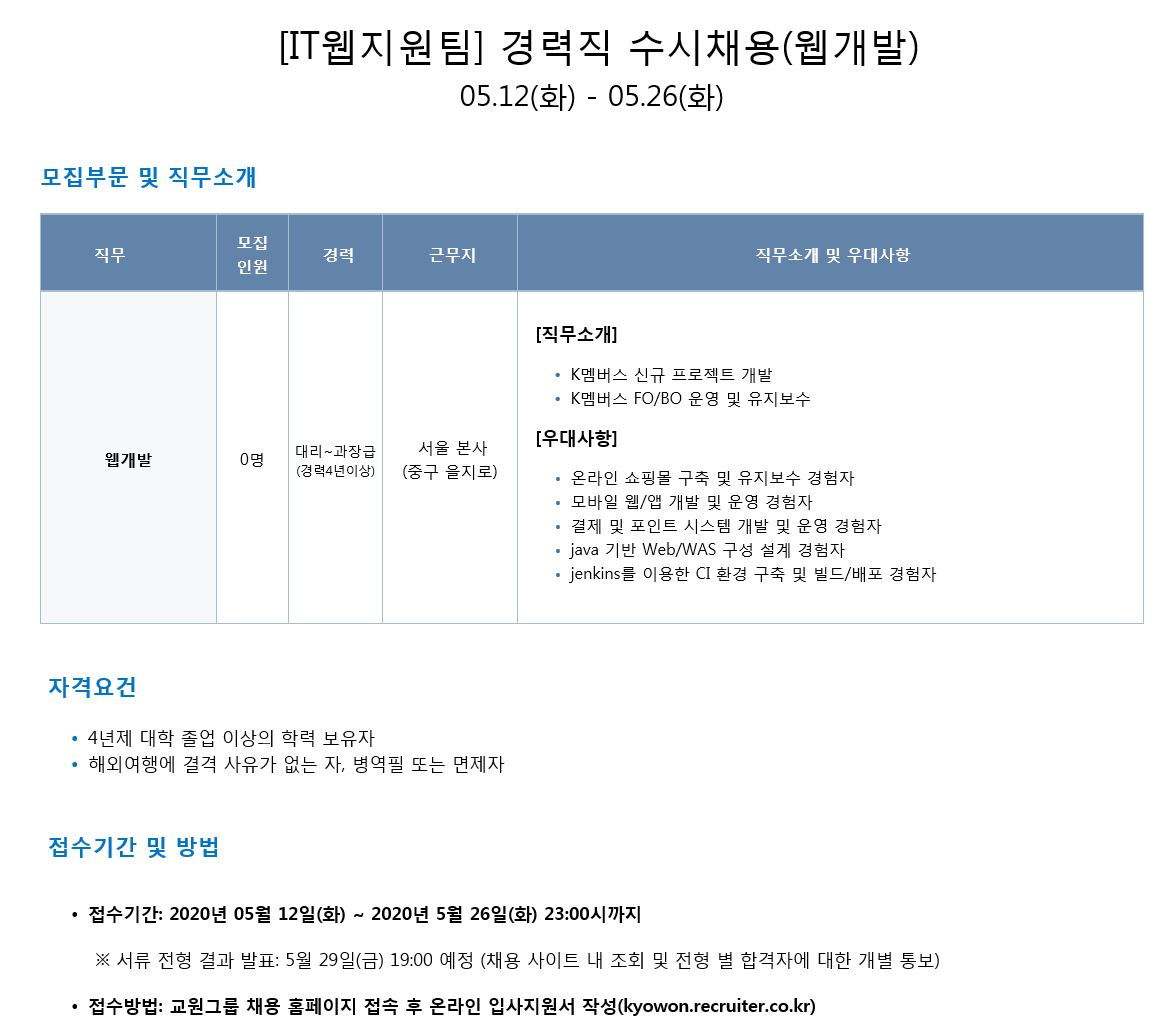 [모집안내] 데이터아키텍처 직무 ☞ '지원서 작성' 바로가기 : https://kyowon.recruiter.co.kr/ ☜ Find your job/수시채용 2020.04.22