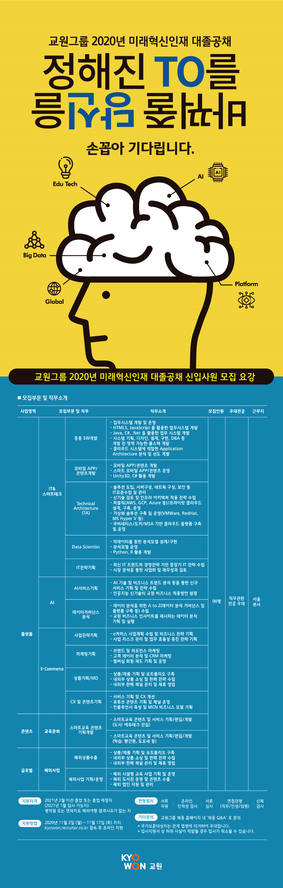 여러분 안녕하세요! 교원 드리머 1기 김민정, 박상아입니다! 10월에는 AI혁신센터 데이터혁신팀에서 근무하시는 분을 만나 뵙고 왔는데요! 함께 데이터 분석 직무를 알아볼까요? Q1. 간단한 자기소개 부탁드립니다. A. 저는 AI혁신센터 데이터혁신팀에서 데이터 분석 업무를 하고 있는 5개월 차 김진석 연구원입니다. Q2. 특별히 교원을 선택하신 이유가 있나요? A. 데이터를 분석하는 관점에서 봤을 때, 교원이 갖고 있는 데이터가 많은 것이 장점이라고 생각했어요. 교원은 유아/초등 교육 콘텐츠 1위 사업자일 뿐만 아니라, 그 외 가전 렌털, 호텔, 이커머스 등의 사업을 하고 있기 때문에 다양한 분야의 데이터를 경험할 수 있어요. Q3. ‘데이터혁신팀’ 이름이 낯선데, 어떤 일을 하는 곳인지 쉽게 설명해 주실..