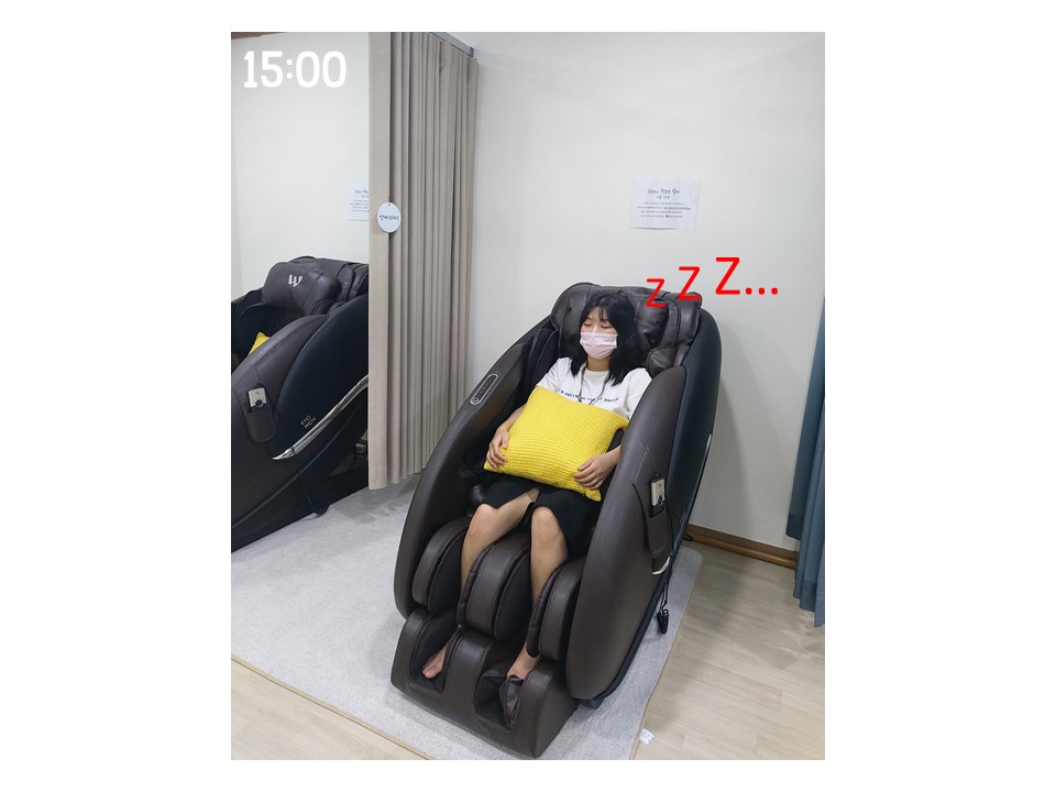 저는 안마의자에 앉아 잠시 30분 동안 휴식을 취했습니다.