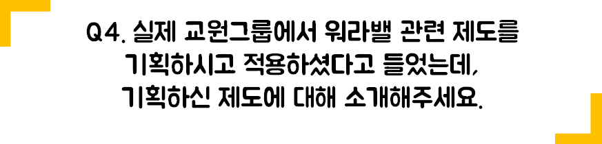안녕하세요. 교육문화사업 부문을 맡고 있는 교원드리머 1기 권아름, 이찬미입니다. 요즘 워라밸에 대한 관심이 높아지고 있는데요. 교원그룹에 어떤 워라밸 제도들이 존재하는지, 워라밸 제도에 대한 직원분들의 반응은 어떠한지 알기 위해 워라밸 관련 제도를 기획, 운영하셨던 인사전략팀 김성목 매니저님을 만나고 왔습니다.