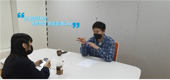 저는 면접을 볼 때 면접자들의 긴장을 풀어드리기 위해 질문을 많이 하는 편입니다. 면접관은 아니지만, 그분이 어떤 분인지 파악하고자 ‘무엇이든 물어보세요’라는 시간을 저 스스로 가지고 있어요.