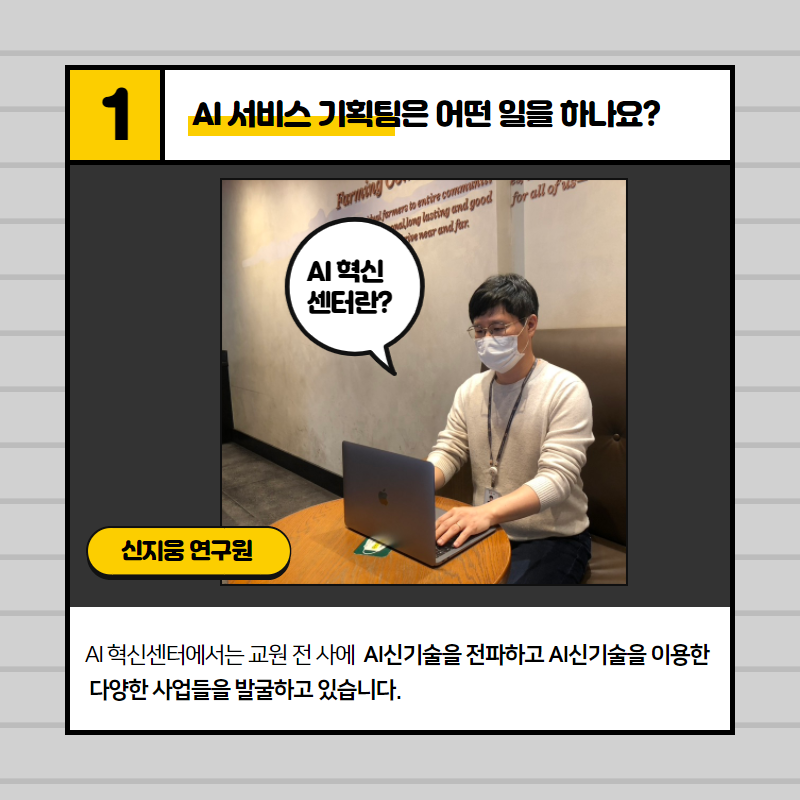 지금까지 AI혁신센터 AI 서비스 기획팀의 신지웅 연구원님과의 인터뷰였습니다.