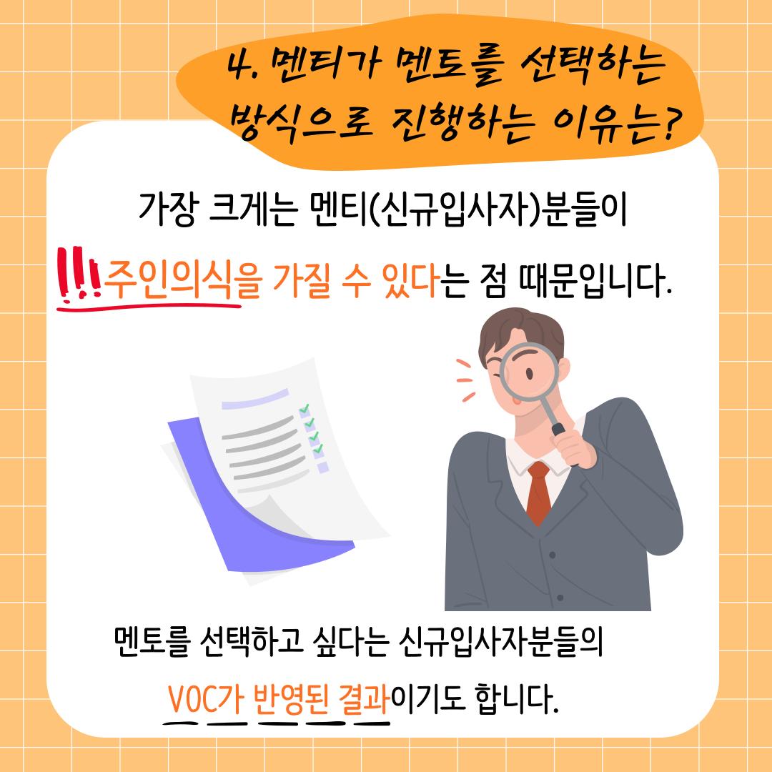 두 번째로는 멘티가 멘토를 선택하고 싶다는 신규입사자 분들의견이 반영된 결과입니다.