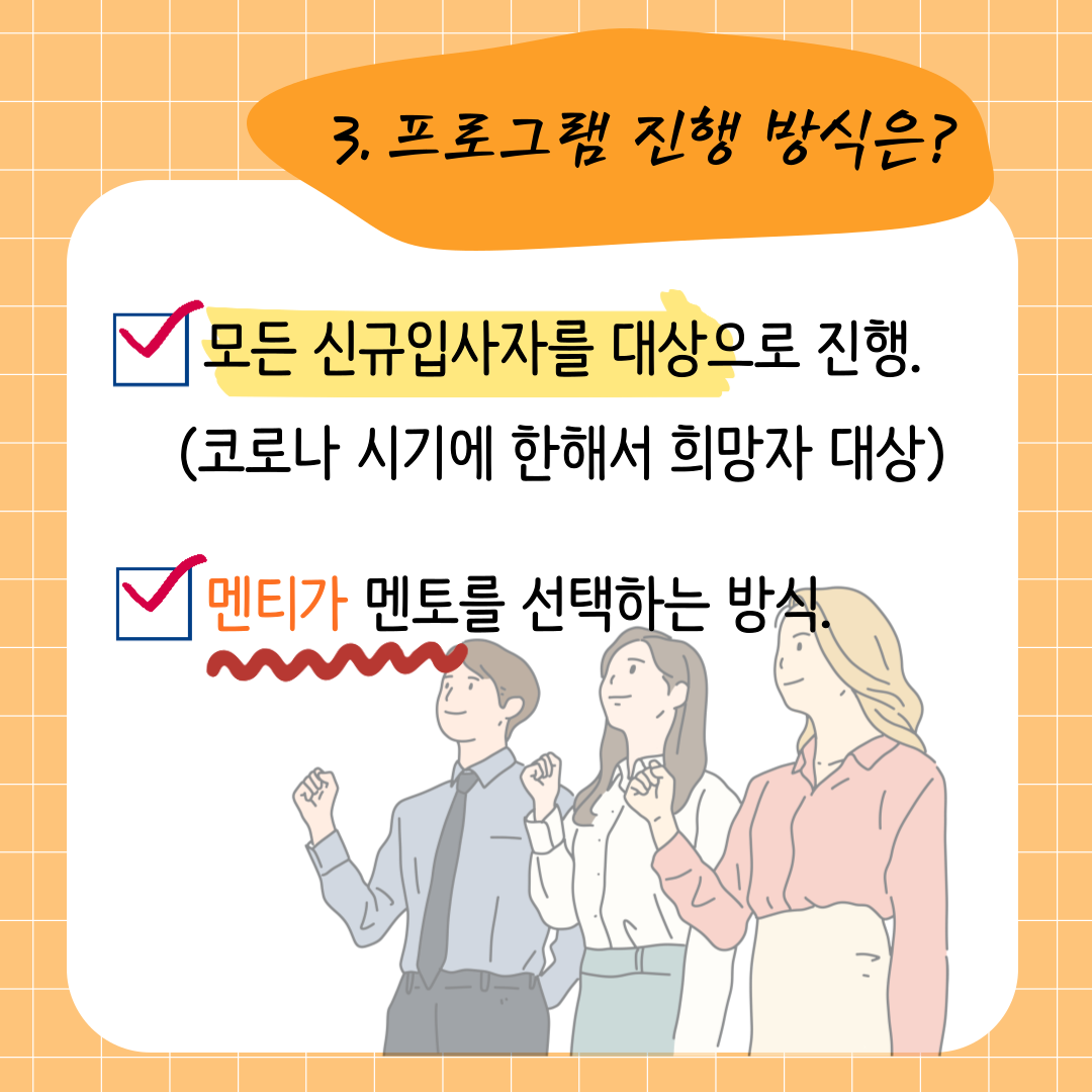 신규입사자 멘토링 제도에 대해 자세히 들어보았는데요.