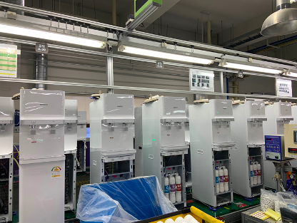 교원인천공장의 주요 생산 시설로는 슈퍼쿨링 정수기 라인이 있습니다. 최근 R600A 친환경 냉매 설비를 구축함을 통해 소비자분들에게 더욱 건강한 제품을 제공하기 위해 노력하고 있습니다.