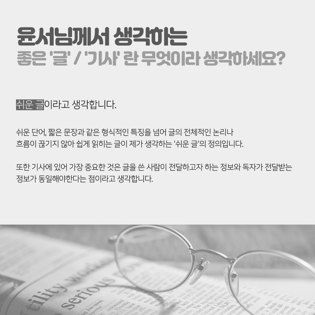 Q. 윤서님께서 생각하는 '좋은 글' (기사)이란 무엇이라 생각하시나요?