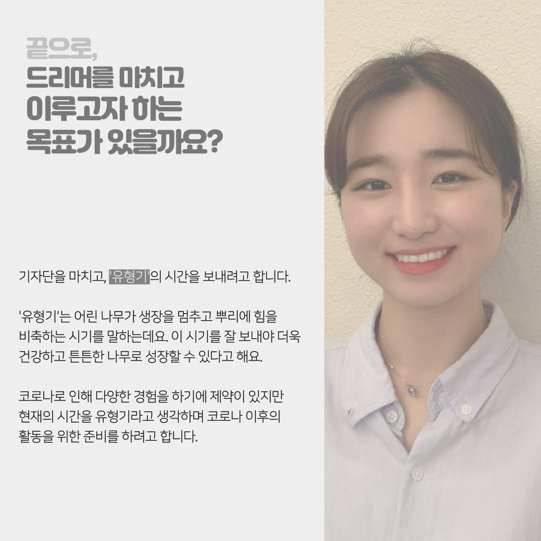 Q. 끝으로, 드리머 활동 이후 궁극적으로 이루고자 하는 목표가 있을까요?