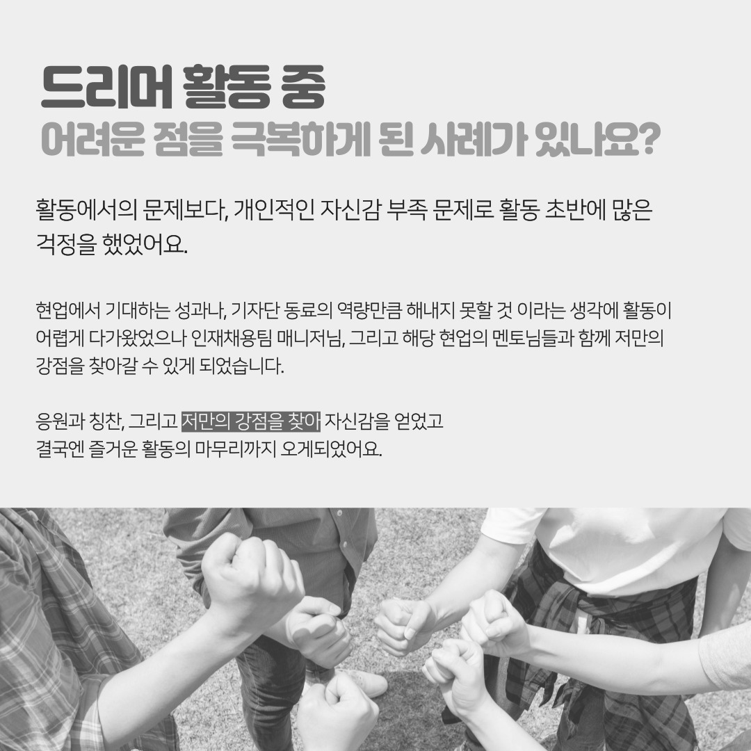 Q. 드리머 활동 중 어려운 점을 극복하게 된 사례가 있을까요?